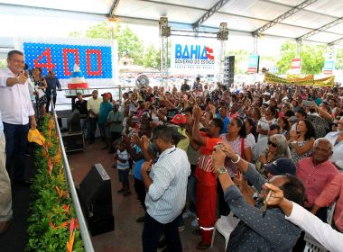 A marca de 400 viagens a trabalho realizadas pelo governador Rui Costa ao interior da Bahia alcançada nesta segunda-feira (19), em Santo Estevão, teve a participação de 92 prefeitos, 21 deputados estaduais e 13 deputados federais. A solenidade foi realizada com uma programação de ações, envolvendo entrega de obras, equipamentos e novas autorizações de serviços que beneficiarão municípios da região. Durante o evento, prefeitos destacaram a presença do governador no interior da Bahia e o atendimento de pleitos de gestores municipais e da sociedade organizada. Ao longo dos três anos de gestão, Rui esteve em 211 sedes municipais, entregou ou visitou 275 estabelecimentos escolares e foi a 186 unidades de saúde alcançando uma das metas de sua gestão: conhecer de perto a realidade dos municípios da Bahia. "O prefeito, o vice-prefeito e o deputado que vão ao meu gabinete sabem que gosto de verificar os detalhes. Por isso, viajo aos municípios para ver in loco o andamento das obras. Essa marca importante é uma marca de gestão das prefeituras e do Governo do Estado", afirmou o governador sobre o porque gosta de conhecer de perto as necessidades de cada cidade.